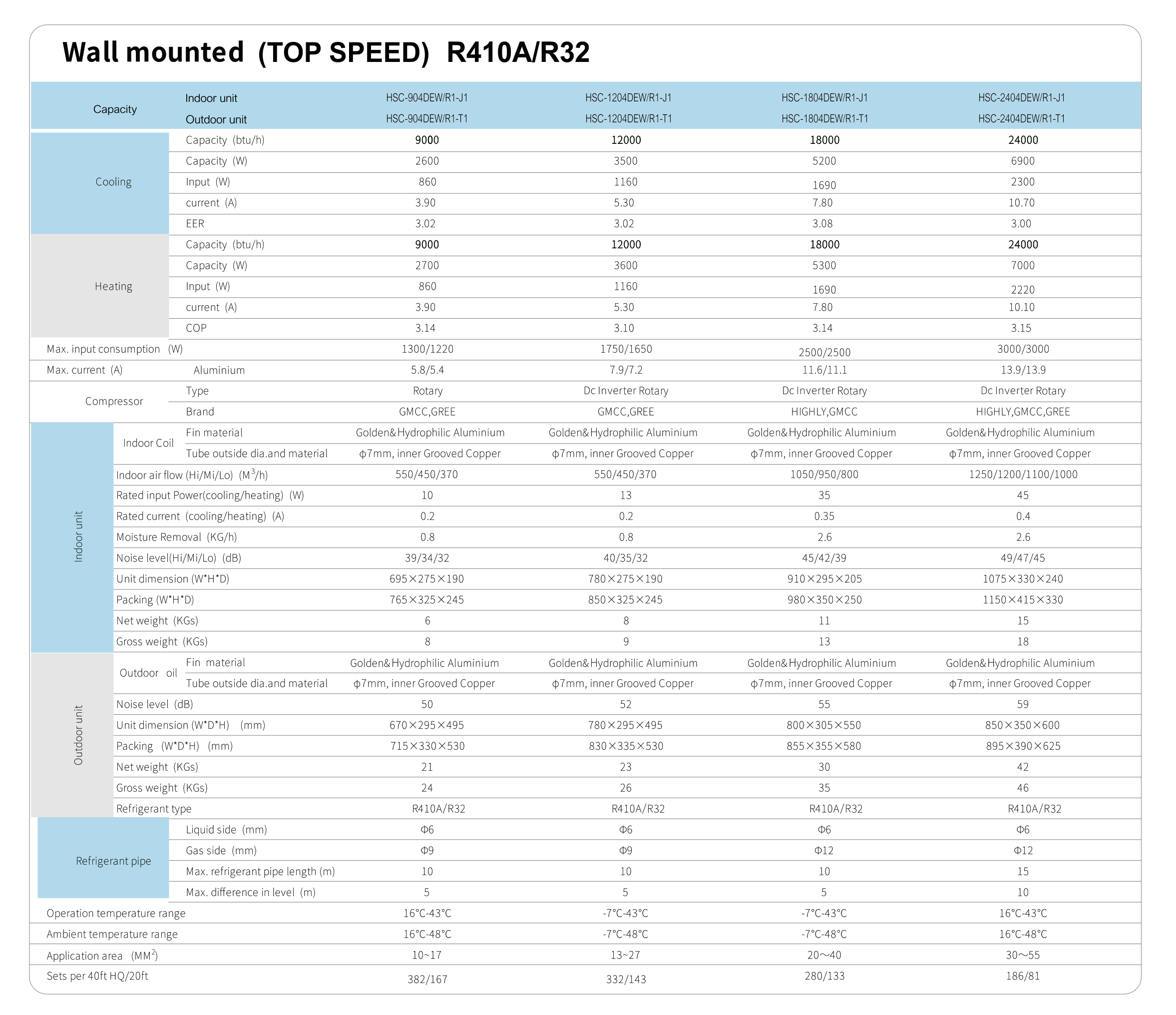 Refrigerant: R410A / R32