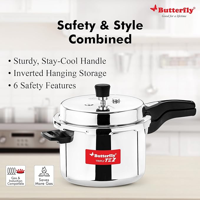 Butterfly Tez Triply Pressure Cooker, OLC, 3 Ltr